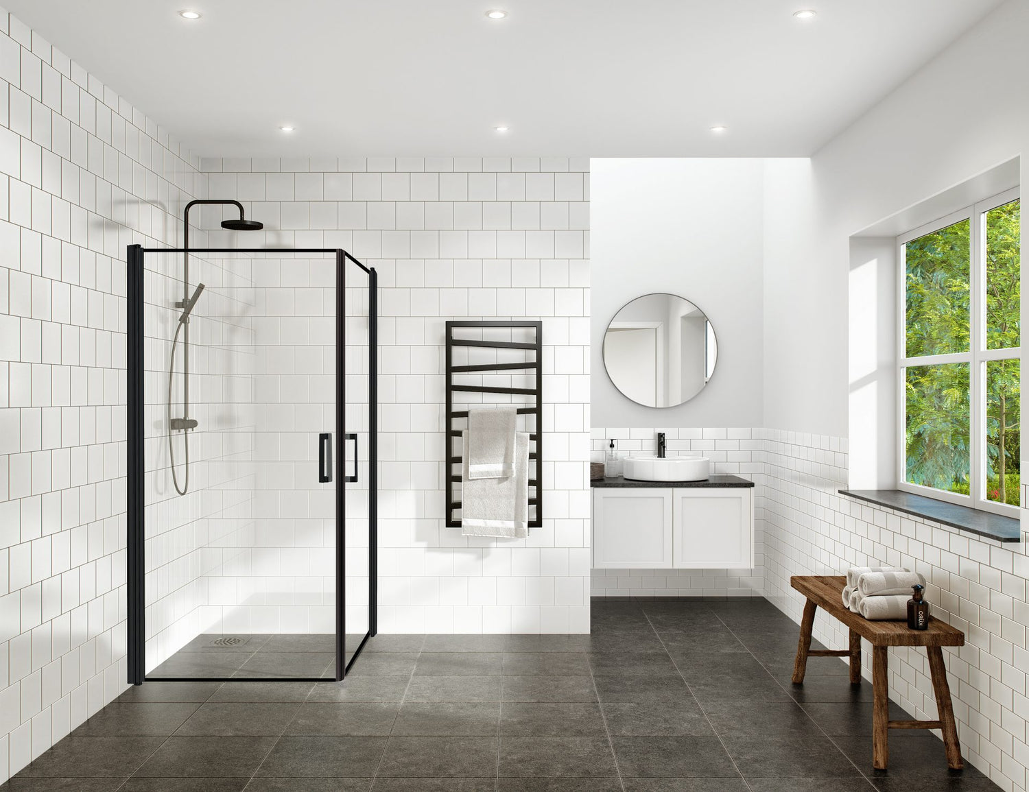 Industrial Decor Frame, en serie moderna duschväggar med industrikänsla som karaktäriseras av snygga profiler i svart och dekorlinjer som ramar in glaset. En dusch för finsmakaren som söker något utöver det vanliga! Dekorlinjerna härdas in i glasets utsida vilket ger en slät yta som är lätt att hålla ren, inga smutssamlande kanter eller skarvar! Frame finns både i standardstorlekar och måttanpassning för perfekt passform. Briljant glasbehandling ingår och underlättar rengöringen av dina duschglas genom att färre vattendroppar stannar kvar på glaset efter avslutad dusch. Designen med snygga beslag och mönstrade stora glasytor skapar ett intryck av ett lyxigt badrum att trivas i.