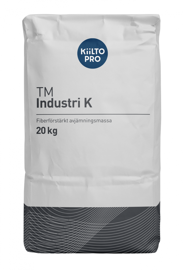 TM Industri K är en cementbaserad, självutjämnande och fiberförstärkt avjämningsmassa som är särskilt utvecklad för industrigolv och andra högbelastade miljöer. Produkten är självuttorkande och lämpar sig för både planspackling och fallspackling i offentliga lokaler, maskinhallar och verkstäder.