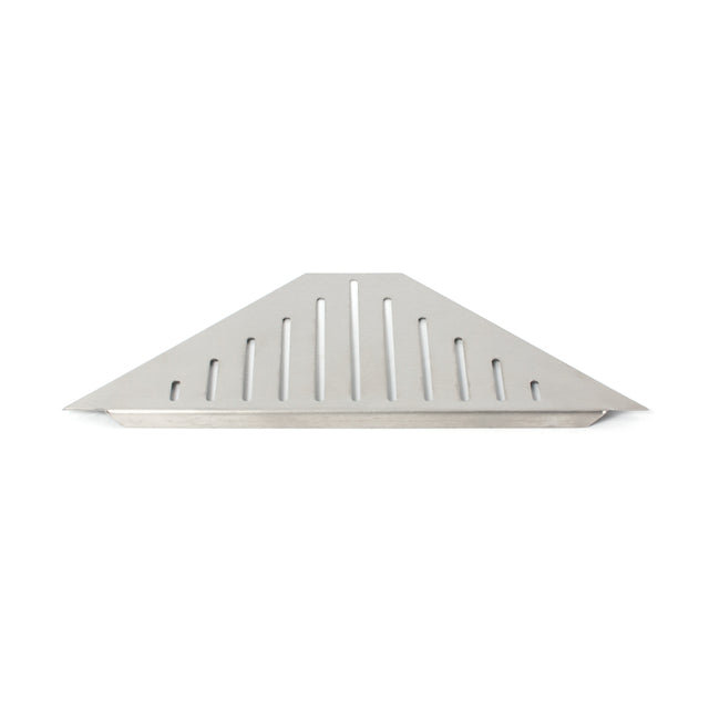 Denna duschhylla är tillverkad i borstat rostfritt stål (AISI 304) med 1 mm godstjocklek. Den passar utmärkt i en 90°-hörna och monteras enkelt i fog eller med silikon, utan att kräva extra håltagning i badrumsväggarna. Den borstade ytan bidrar till ett modernt och stilrent intryck, samtidigt som slitsarna i hyllplanet låter vattnet rinna av effektivt.